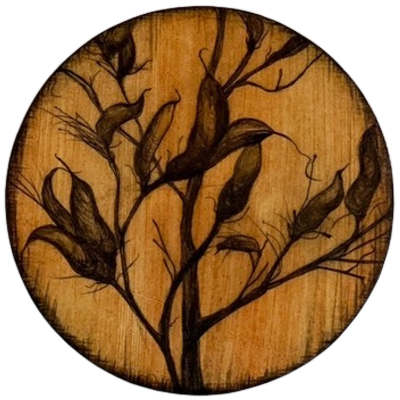 Ink and shellac on board