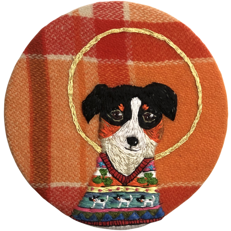 Embroidery & wool on board