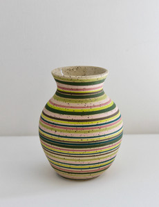 Assembling, collating and hybridising to reconfigure visual vocabularies, she works across a variety of media. Her first exhibited works were wood block prints and she has extended her visual investigation and practice into the area of painting and ceramics.