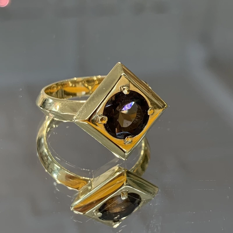 Frame Ring - Gold plated and Smokey Quartz
