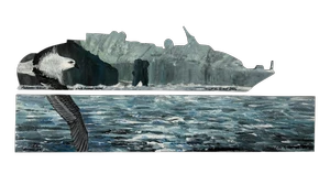 Out to Sea from Macquarie Island - Elephant Seal in Tussock Grass