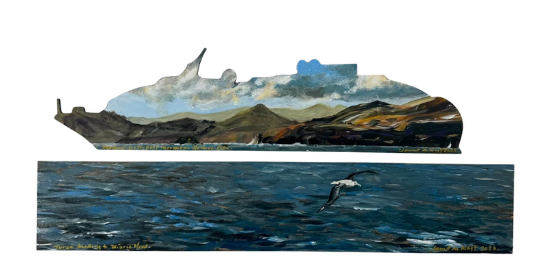 Oil on ship cut-out with panel (diptych)