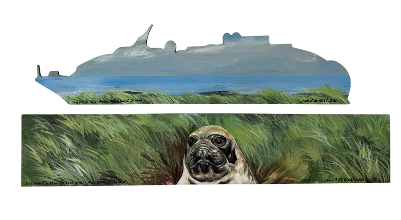 Out to Sea from Macquarie Island - Elephant Seal in Tussock Grass