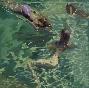 Growing up on Sydney Beaches, and now living on the north coast of New South Wales, Marko Hrubyj-Piper has become synonymous with his paintings of coastal scenes. Australian beach culture continues to be the focus of his new series, Lifestyle Choices, which documents moments of leisure experienced when connecting with people and landscape. Paintings feature figures lazing on sundrenched sand, floating on paddleboards and swimming through sparkling ocean waters.