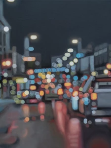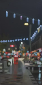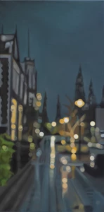With oil paint as her chosen medium, Mel represents water, land, and light in blurry, but luminous artworks. Through the application of layers of paint, points of light become shimmering ornaments on canvas. Capturing fleeting moments of beauty to elevate our daily landmarks, inviting us to explore the world anew through the artist’s eyes.