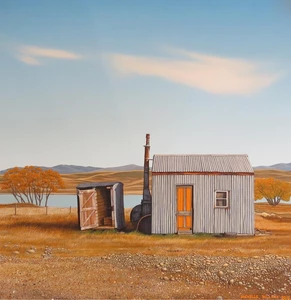 The surrounding countryside of Nelson and further south were inspiring landscapes for Bellamy. She had extensively explored the Boulder Bank Baches and based two exhibitions around them, as she enjoys the originality and rustic appeal. Although she now resides in the central North Island her eye is still drawn coastward and the body of work she is currently working on is based around coastal baches and boatsheds.