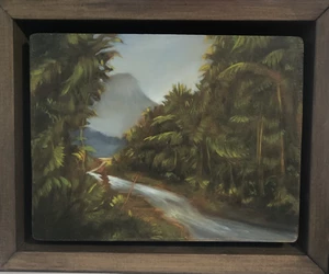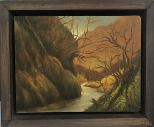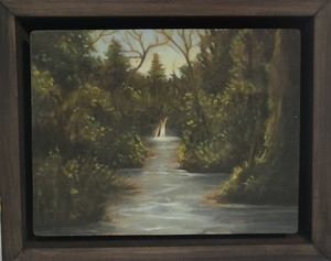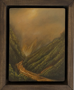 Having received an MFA in printmaking from the University of Georgia 1995, Mike then began painting imagined landscapes on small wood panels. These loosely rendered images were done partially in response to the heavy process inherent in intaglio printmaking. Also this was his way of investigating imagined places instead of relying exclusively on a particular scene or set of conditions.