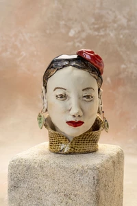 Nachiko specialises in functional pottery-ware; Raku pottery objects; sculptured character studies' and glaze-art. Combinations of various materials and glazes fired to different temperatures complete her intriguing and unique character studies and abstract pieces.