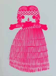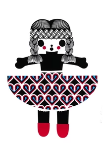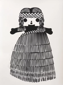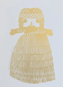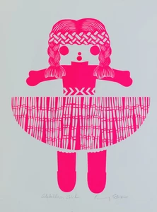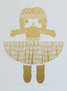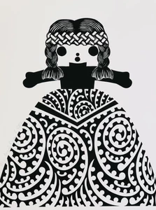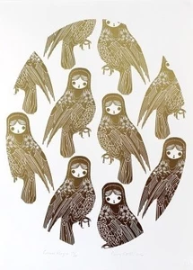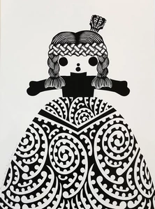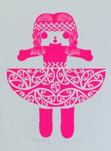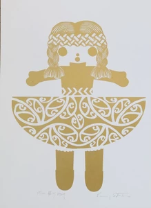 Stotter’s pride in her homeland was honed during years spent in Europe and Melbourne. When she returned and put down roots on Waiheke Island (off the coast of Auckland) she began to employ motifs of New Zealand’s unique flora and fauna in her work as well as less likely cultural icons such as a vintage Maori doll (named Rua). Her love of the process of pattern-making is obvious in the meticulous arrangement of their shapes into her final compositions. Their abstraction is a nod to her time spent practising as a graphic designer prior to devoting herself to her art full time and doing justice to her degree from the Ilam School of Fine Arts.