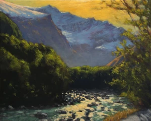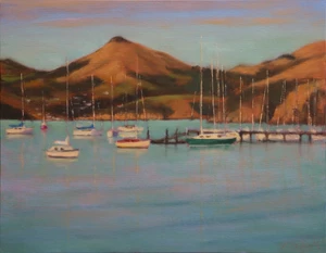 Living in the South Island Philip finds plenty of city and rural landscapes an immediate source of inspiration - in particular the Canterbury plains and mountains, as well as the Central Otago lakes, vineyards and mountains.
