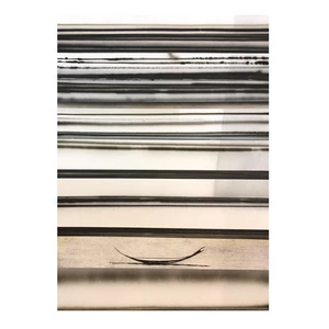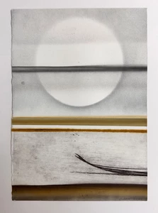 Land, sea and sky dominate Simon Kaan’s works. The spaces are fragmented by floating, horizon lines, which create a sense of rhythm and movement – a rhythm Kaan says echoes that of the sea and the waves. Kaan is of Ngai Tahu, Chinese and European descent and, though the waka shape is distinctly Māori, Kaan says the boat as a vessel for the living and the dead is pretty much a universal symbol.